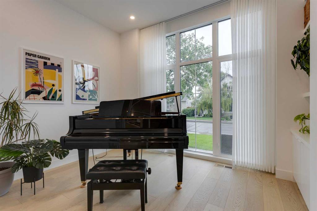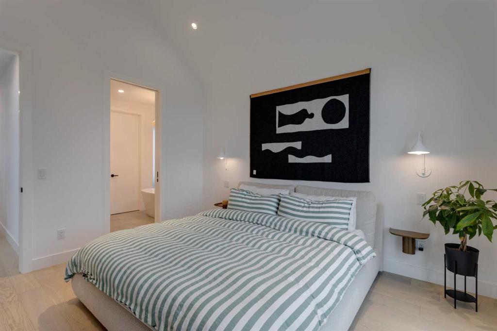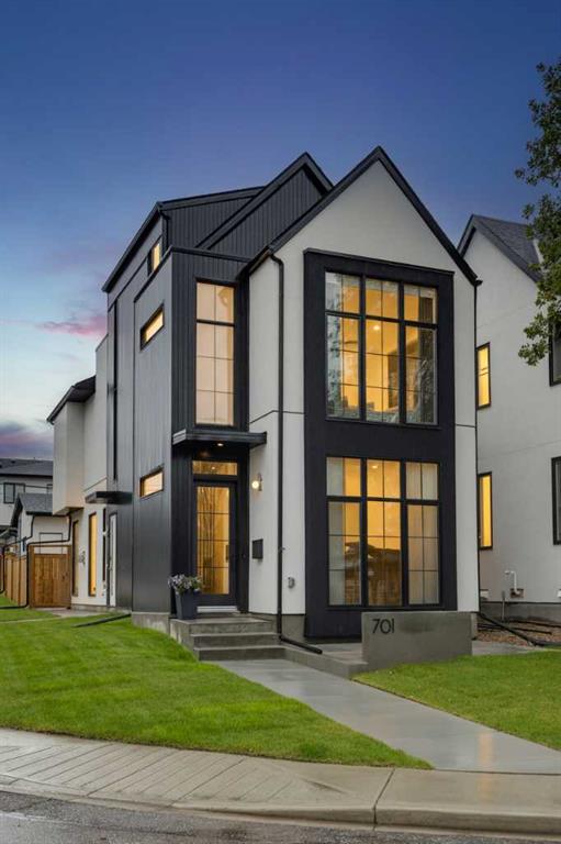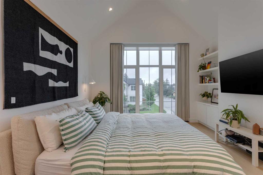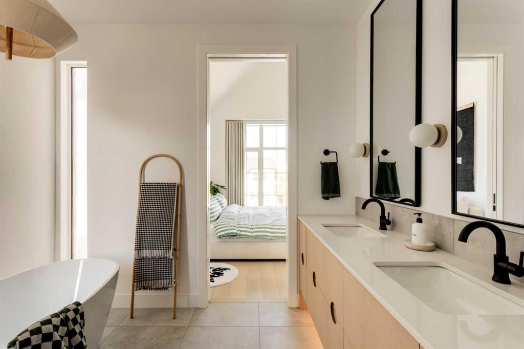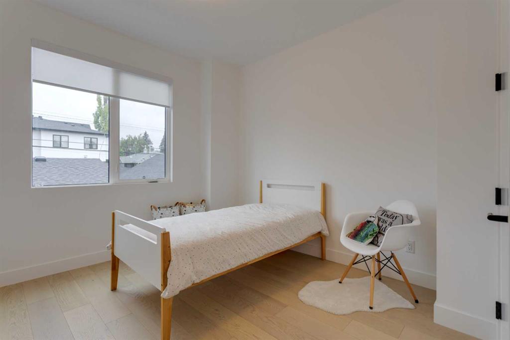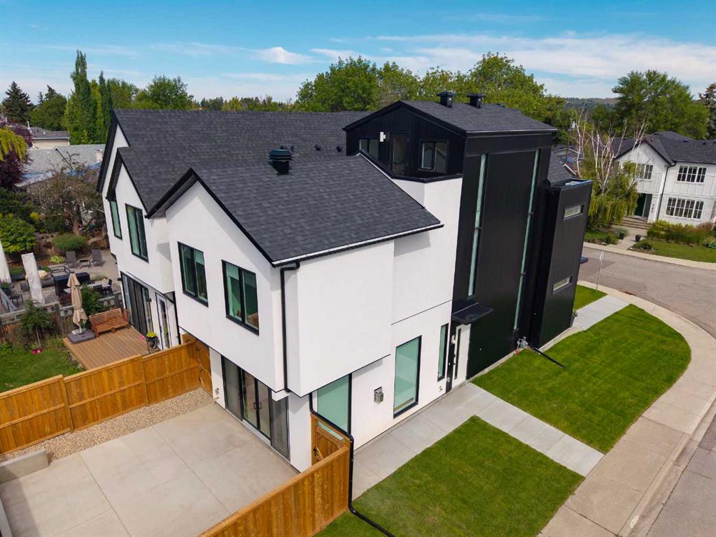 OPEN HOUSE SUNDAY OCT 5, 1:30 TO 3. Magazine-worthy living! Just featured in Avenue Magazine (some photos used from the spread with permission), the home is a collaboration of notable Alberta designers, including architecture by JTA Design, interiors by Studio Felix, and custom work by Denca Cabinetry, Crete Collective, and Forge 53°. Every facet of the home was painstakingly crafted to maximize light and create subtle interest - warm, understated beauty inhabits every inch. Clean lines and subtle tones create a calming, minimalist feel, hinting at both Scandinavian and Japanese design. THE LOCATION - Situated on a cul-de-sac with direct access to Confederation Park, means there are no streets to cross for your family when seeking time in the park. The corner lot allows for more natural light and privacy than the usual infill. South-facing backyard provides year-round sun, for long evenings with friends and family. THE HOUSE - This 4bdr (3 up, 1 dn) air-conditioned home offers over 3,100 sq. ft. of living space. The basement has potential for a 5th bedroom, and the home boasts 4 bathrooms. Main floor features 10-foot ceilings, while the basement and other levels have 9-foot. Note the over-sized windows on all sides of the home, which flood every floor with natural light. White steel stairwell railings and custom piano room doors by Forge 53°. THIRD FLOOR - A large bonus room offers a great place to escape for adults and kids alike, either for the views of downtown from the rooftop patio, or to enjoy as a fantastic games room. SECOND FLOOR - The primary bedroom showcases a spacious and luxurious ensuite and a walk-in closet. The second floor also has two additional bedrooms, a 5-piece bathroom and a laundry room. MAIN FLOOR - Studio Felix really shines here. The main floor entrance features natural wood accents, leading to a piano room or office with elegant designer steel doors. The custom Denca Cabinetry kitchen was designed with rounded stone counters and Fisher & Paykel appliances, including an integrated fridge with wooden accents and gas range. Adjoining the kitchen is a spacious, well-lit living room with backyard access. BASEMENT - The basement features polished concrete floors, 9-foot ceilings, a large bedroom, a 4-piece bathroom, and an exercise area. Once again, the oversized windows bring extra light to the space. EXTERIOR - Bold black and white aesthetics make the home a landmark. The low-maintenance backyard can accommodate shrubs and even a garden around the 2-car garage which is accessed from a fantastic paved alley. Full feature list is available upon request. Must be seen to be appreciated - Schedule your viewing to experience the property in person!