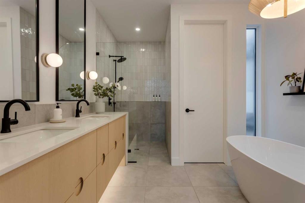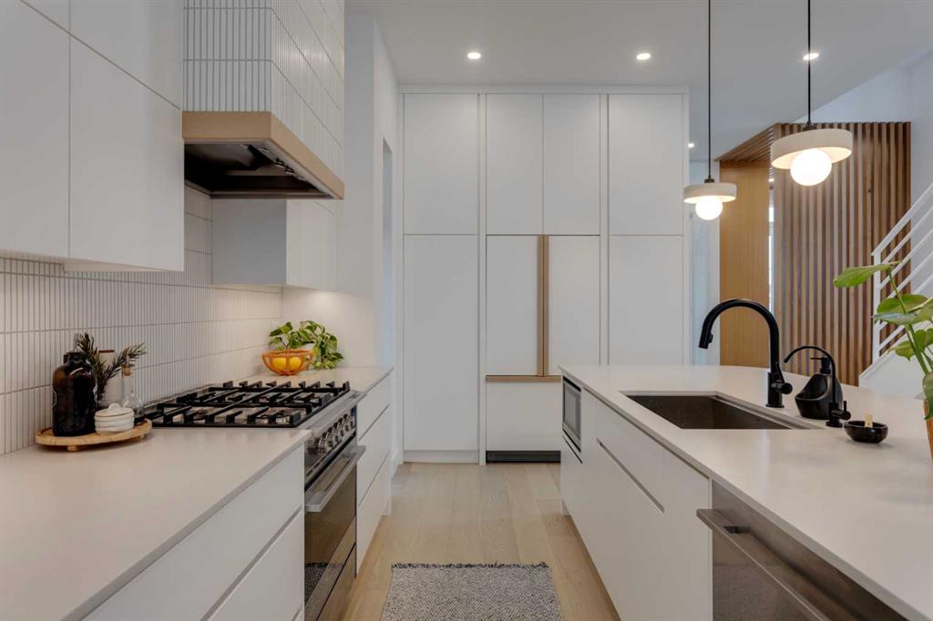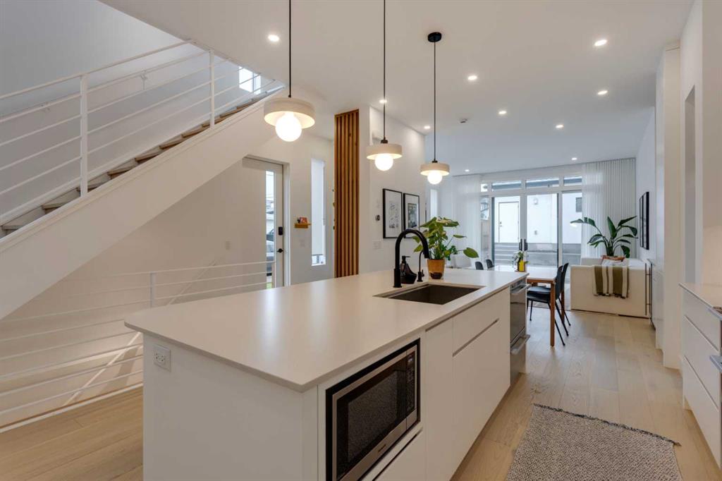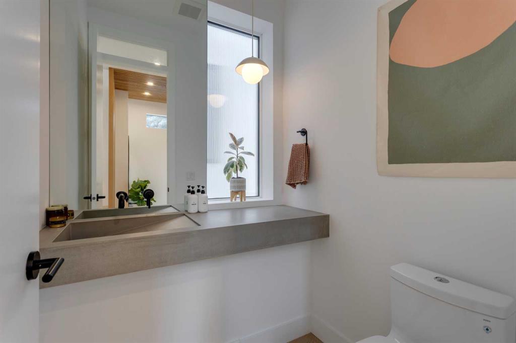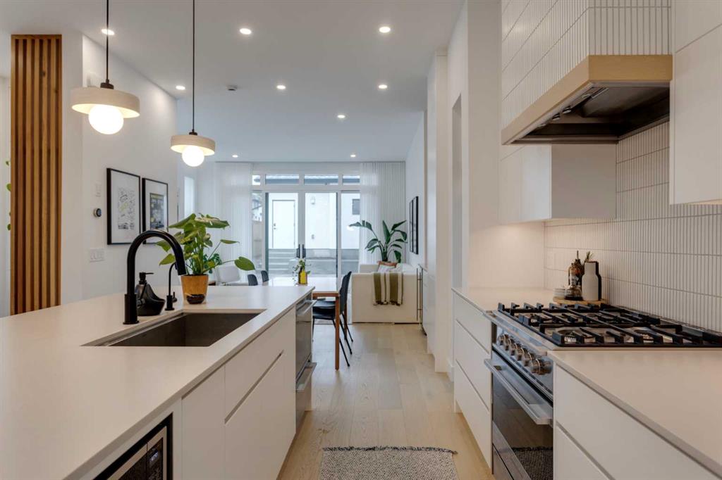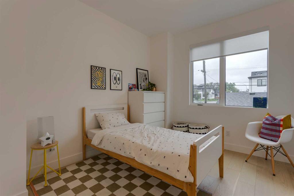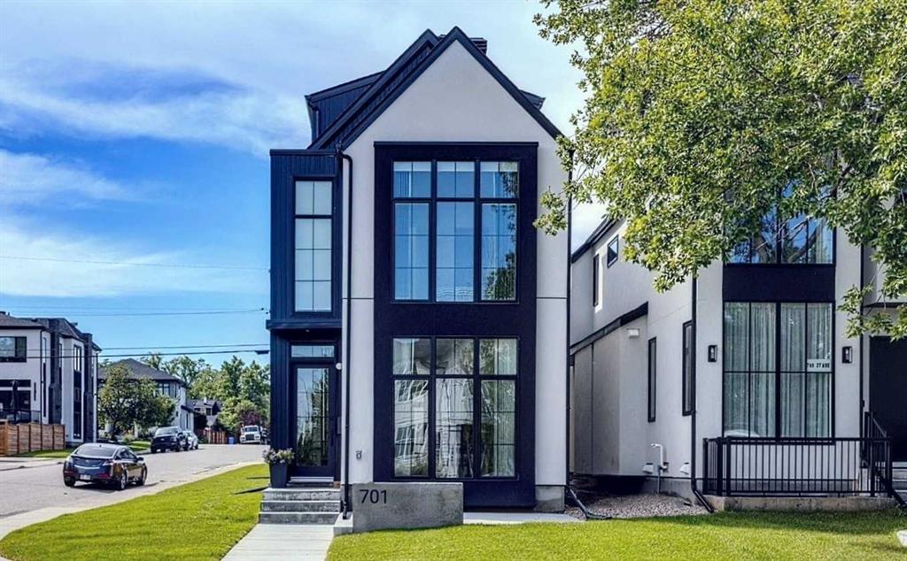 OPEN HOUSE SUNDAY OCT 5, 1:30 TO 3. Magazine-worthy living! Just featured in Avenue Magazine (some photos used from the spread with permission), the home is a collaboration of notable Alberta designers, including architecture by JTA Design, interiors by Studio Felix, and custom work by Denca Cabinetry, Crete Collective, and Forge 53°. Every facet of the home was painstakingly crafted to maximize light and create subtle interest - warm, understated beauty inhabits every inch. Clean lines and subtle tones create a calming, minimalist feel, hinting at both Scandinavian and Japanese design. THE LOCATION - Situated on a cul-de-sac with direct access to Confederation Park, means there are no streets to cross for your family when seeking time in the park. The corner lot allows for more natural light and privacy than the usual infill. South-facing backyard provides year-round sun, for long evenings with friends and family. THE HOUSE - This 4bdr (3 up, 1 dn) air-conditioned home offers over 3,100 sq. ft. of living space. The basement has potential for a 5th bedroom, and the home boasts 4 bathrooms. Main floor features 10-foot ceilings, while the basement and other levels have 9-foot. Note the over-sized windows on all sides of the home, which flood every floor with natural light. White steel stairwell railings and custom piano room doors by Forge 53°. THIRD FLOOR - A large bonus room offers a great place to escape for adults and kids alike, either for the views of downtown from the rooftop patio, or to enjoy as a fantastic games room. SECOND FLOOR - The primary bedroom showcases a spacious and luxurious ensuite and a walk-in closet. The second floor also has two additional bedrooms, a 5-piece bathroom and a laundry room. MAIN FLOOR - Studio Felix really shines here. The main floor entrance features natural wood accents, leading to a piano room or office with elegant designer steel doors. The custom Denca Cabinetry kitchen was designed with rounded stone counters and Fisher & Paykel appliances, including an integrated fridge with wooden accents and gas range. Adjoining the kitchen is a spacious, well-lit living room with backyard access. BASEMENT - The basement features polished concrete floors, 9-foot ceilings, a large bedroom, a 4-piece bathroom, and an exercise area. Once again, the oversized windows bring extra light to the space. EXTERIOR - Bold black and white aesthetics make the home a landmark. The low-maintenance backyard can accommodate shrubs and even a garden around the 2-car garage which is accessed from a fantastic paved alley. Full feature list is available upon request. Must be seen to be appreciated - Schedule your viewing to experience the property in person!