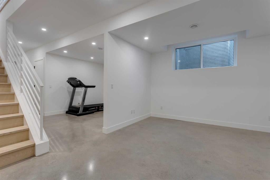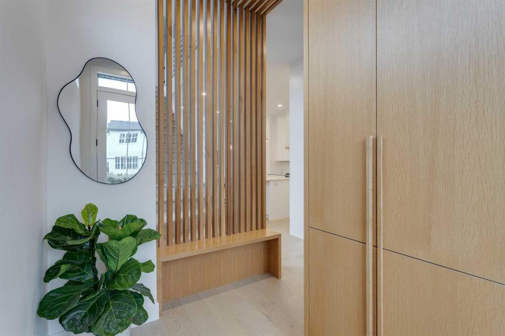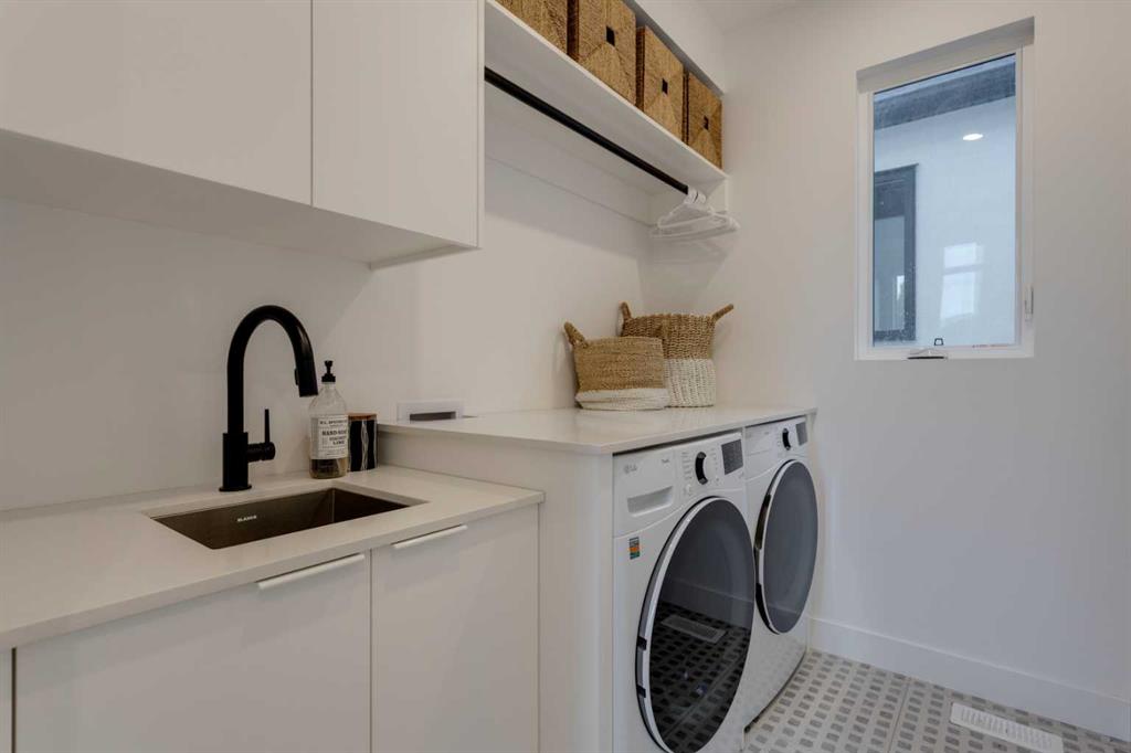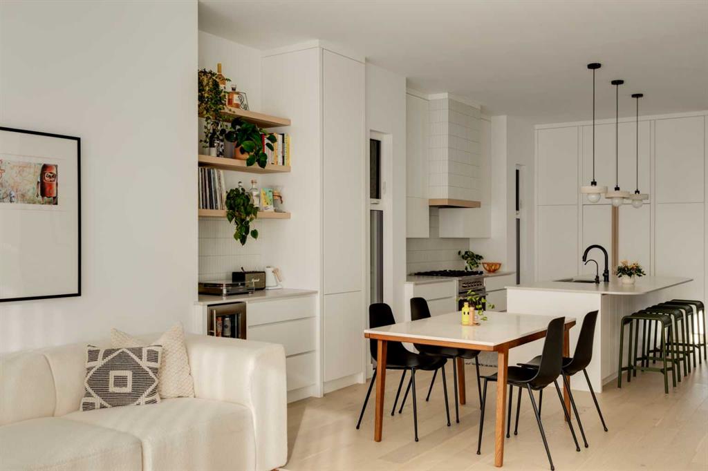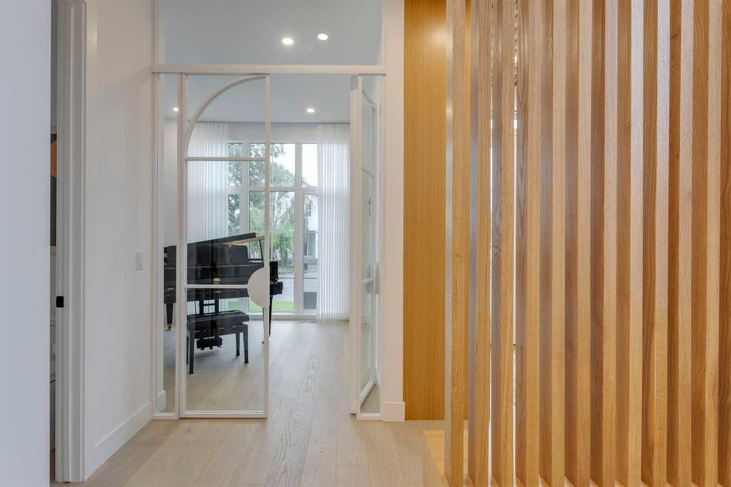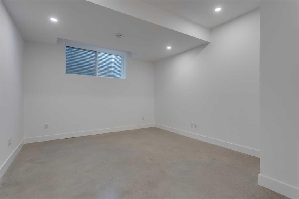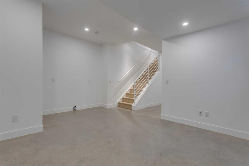 OPEN HOUSE SUNDAY OCT 5, 1:30 TO 3. Magazine-worthy living! Just featured in Avenue Magazine (some photos used from the spread with permission), the home is a collaboration of notable Alberta designers, including architecture by JTA Design, interiors by Studio Felix, and custom work by Denca Cabinetry, Crete Collective, and Forge 53°. Every facet of the home was painstakingly crafted to maximize light and create subtle interest - warm, understated beauty inhabits every inch. Clean lines and subtle tones create a calming, minimalist feel, hinting at both Scandinavian and Japanese design. THE LOCATION - Situated on a cul-de-sac with direct access to Confederation Park, means there are no streets to cross for your family when seeking time in the park. The corner lot allows for more natural light and privacy than the usual infill. South-facing backyard provides year-round sun, for long evenings with friends and family. THE HOUSE - This 4bdr (3 up, 1 dn) air-conditioned home offers over 3,100 sq. ft. of living space. The basement has potential for a 5th bedroom, and the home boasts 4 bathrooms. Main floor features 10-foot ceilings, while the basement and other levels have 9-foot. Note the over-sized windows on all sides of the home, which flood every floor with natural light. White steel stairwell railings and custom piano room doors by Forge 53°. THIRD FLOOR - A large bonus room offers a great place to escape for adults and kids alike, either for the views of downtown from the rooftop patio, or to enjoy as a fantastic games room. SECOND FLOOR - The primary bedroom showcases a spacious and luxurious ensuite and a walk-in closet. The second floor also has two additional bedrooms, a 5-piece bathroom and a laundry room. MAIN FLOOR - Studio Felix really shines here. The main floor entrance features natural wood accents, leading to a piano room or office with elegant designer steel doors. The custom Denca Cabinetry kitchen was designed with rounded stone counters and Fisher & Paykel appliances, including an integrated fridge with wooden accents and gas range. Adjoining the kitchen is a spacious, well-lit living room with backyard access. BASEMENT - The basement features polished concrete floors, 9-foot ceilings, a large bedroom, a 4-piece bathroom, and an exercise area. Once again, the oversized windows bring extra light to the space. EXTERIOR - Bold black and white aesthetics make the home a landmark. The low-maintenance backyard can accommodate shrubs and even a garden around the 2-car garage which is accessed from a fantastic paved alley. Full feature list is available upon request. Must be seen to be appreciated - Schedule your viewing to experience the property in person!
