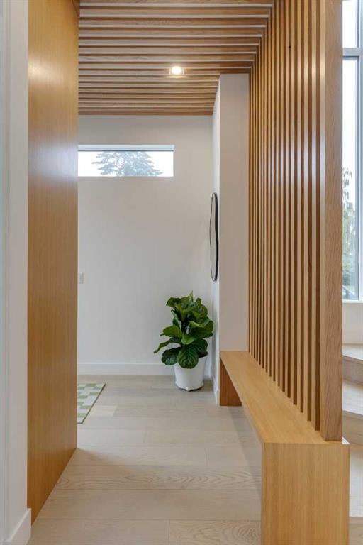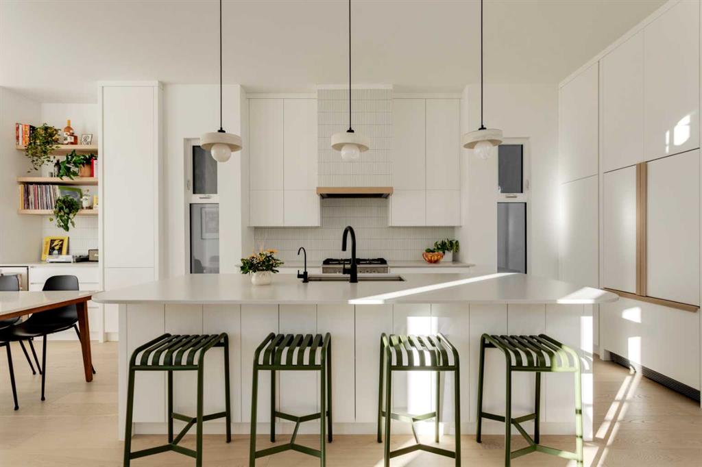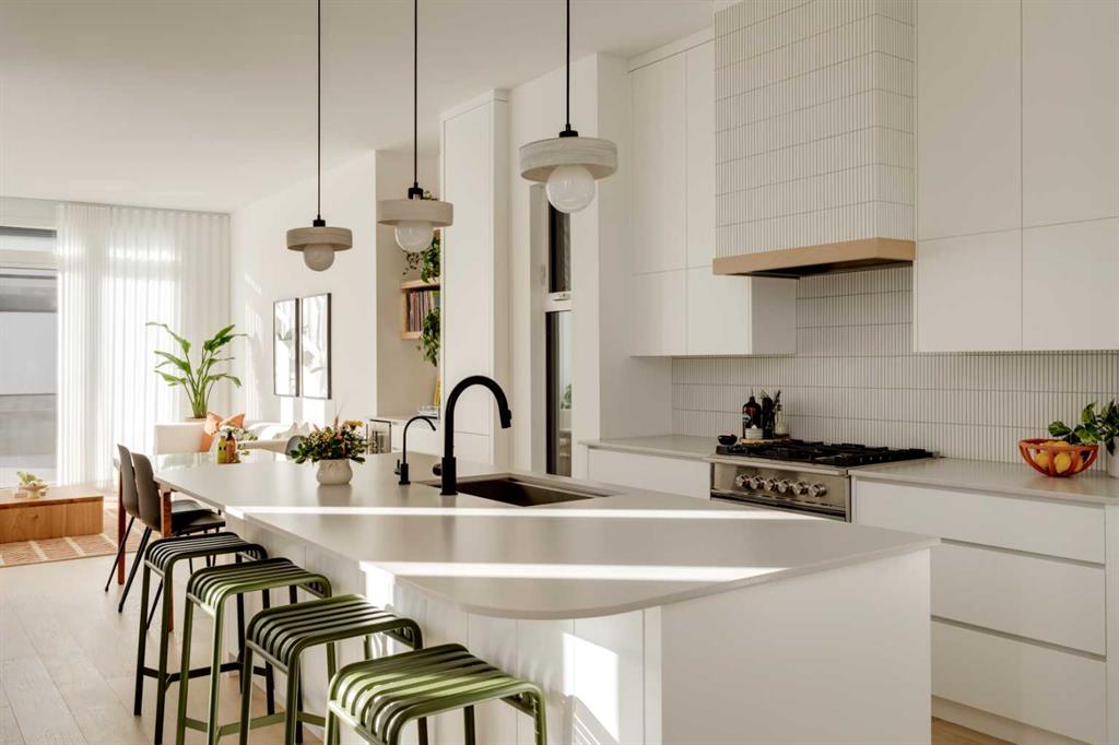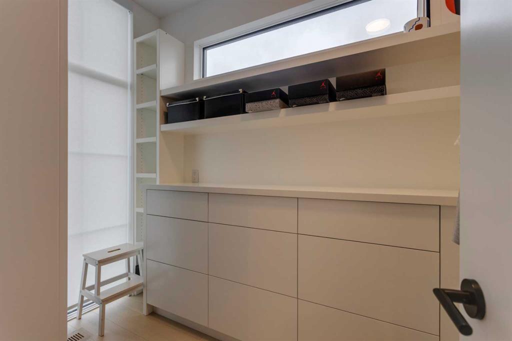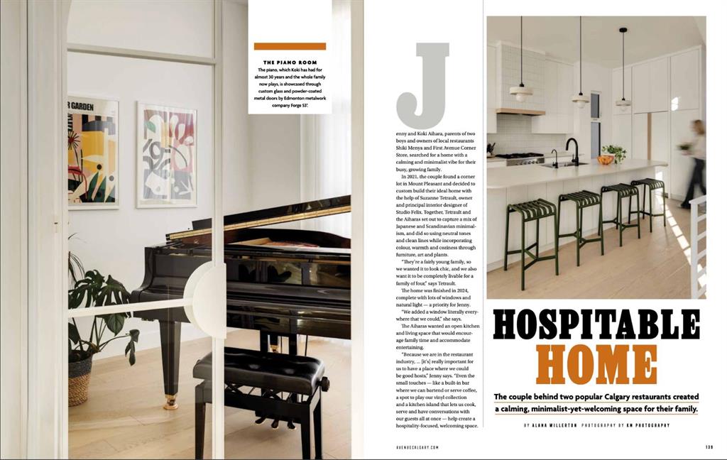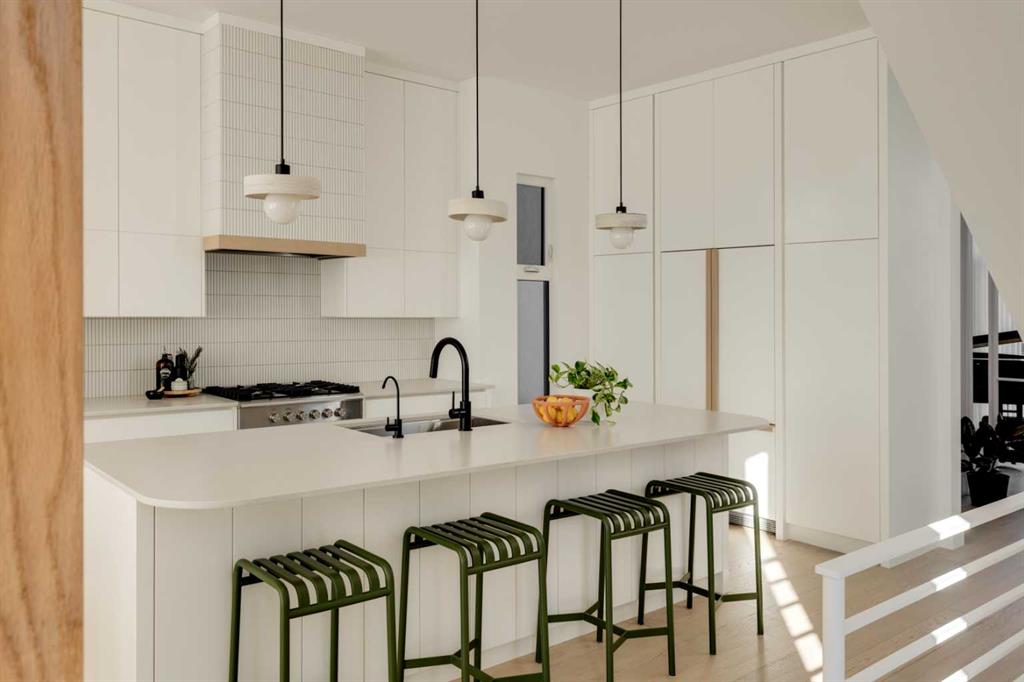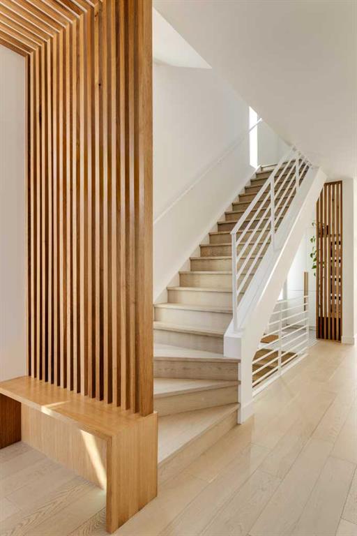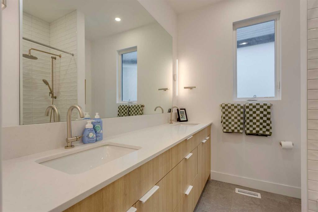 OPEN HOUSE SUNDAY OCT 5, 1:30 TO 3. Magazine-worthy living! Just featured in Avenue Magazine (some photos used from the spread with permission), the home is a collaboration of notable Alberta designers, including architecture by JTA Design, interiors by Studio Felix, and custom work by Denca Cabinetry, Crete Collective, and Forge 53°. Every facet of the home was painstakingly crafted to maximize light and create subtle interest - warm, understated beauty inhabits every inch. Clean lines and subtle tones create a calming, minimalist feel, hinting at both Scandinavian and Japanese design. THE LOCATION - Situated on a cul-de-sac with direct access to Confederation Park, means there are no streets to cross for your family when seeking time in the park. The corner lot allows for more natural light and privacy than the usual infill. South-facing backyard provides year-round sun, for long evenings with friends and family. THE HOUSE - This 4bdr (3 up, 1 dn) air-conditioned home offers over 3,100 sq. ft. of living space. The basement has potential for a 5th bedroom, and the home boasts 4 bathrooms. Main floor features 10-foot ceilings, while the basement and other levels have 9-foot. Note the over-sized windows on all sides of the home, which flood every floor with natural light. White steel stairwell railings and custom piano room doors by Forge 53°. THIRD FLOOR - A large bonus room offers a great place to escape for adults and kids alike, either for the views of downtown from the rooftop patio, or to enjoy as a fantastic games room. SECOND FLOOR - The primary bedroom showcases a spacious and luxurious ensuite and a walk-in closet. The second floor also has two additional bedrooms, a 5-piece bathroom and a laundry room. MAIN FLOOR - Studio Felix really shines here. The main floor entrance features natural wood accents, leading to a piano room or office with elegant designer steel doors. The custom Denca Cabinetry kitchen was designed with rounded stone counters and Fisher & Paykel appliances, including an integrated fridge with wooden accents and gas range. Adjoining the kitchen is a spacious, well-lit living room with backyard access. BASEMENT - The basement features polished concrete floors, 9-foot ceilings, a large bedroom, a 4-piece bathroom, and an exercise area. Once again, the oversized windows bring extra light to the space. EXTERIOR - Bold black and white aesthetics make the home a landmark. The low-maintenance backyard can accommodate shrubs and even a garden around the 2-car garage which is accessed from a fantastic paved alley. Full feature list is available upon request. Must be seen to be appreciated - Schedule your viewing to experience the property in person!