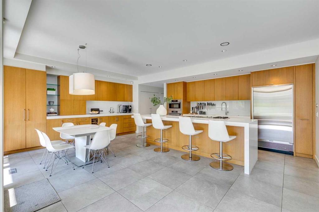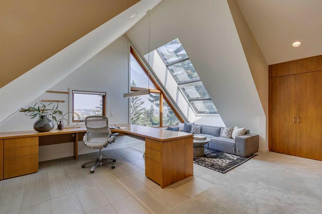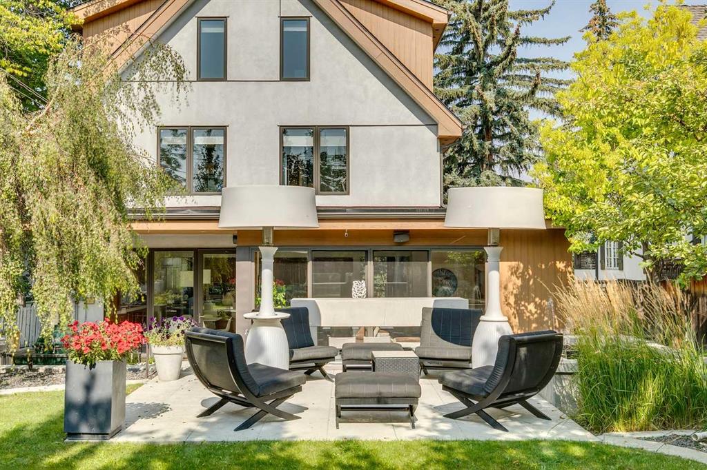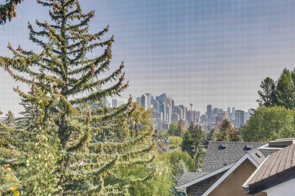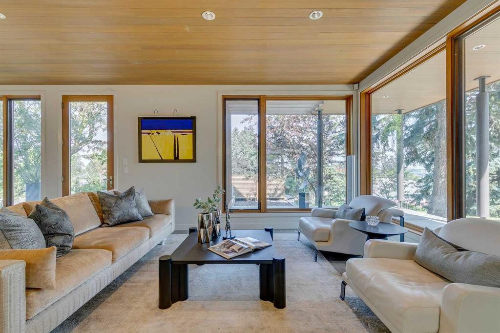 Stunning one of a kind contemporary family home in the heart of desirable Scarboro, just around the corner from the Sunalta School. This home which was completely transformed in 2013 with modern scale + design of windows + sight lines + the creation of two gorgeous outdoor living spaces both at the front + back of the property. Impressive curb appeal is welcoming with the house set back from the street . Enter to a warm living room/dining room combination with loads of windows + stunning Cypress wood ceiling. The back of the house is set up from comfortable informal living with a huge chef’s kitchen with ample storage, professional appliances, amazing pantry, large island + informal dining. The great room is right off the kitchen with ribbon gas fireplace. The entire back of the house is stunning floor to ceiling windows over looking the south facing garden + outdoor living space. On the second level there are two comfortable bedrooms + a very generous upper lounge. Laundry is also on this level. A Primary retreat, like no other, is on the third level. This luxurious space with soaring ceilings + city views consists of a built in office, lounge, sleeping quarters + spa ensuite bath as well as an substantial sized closet system. Media room, flex room, a wine cellar, mudroom + extra storage are located in the lower level which also has access to the under drive double attached garage. Amazing outdoor spaces with fountains, fireplace, + mature landscaping offers a great space for summer entertaining + room for kids to play. The quality of this home is clear with top of the line materials, a generous amount of wood, gorgeous stone + more. A must to view!