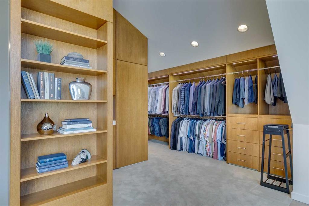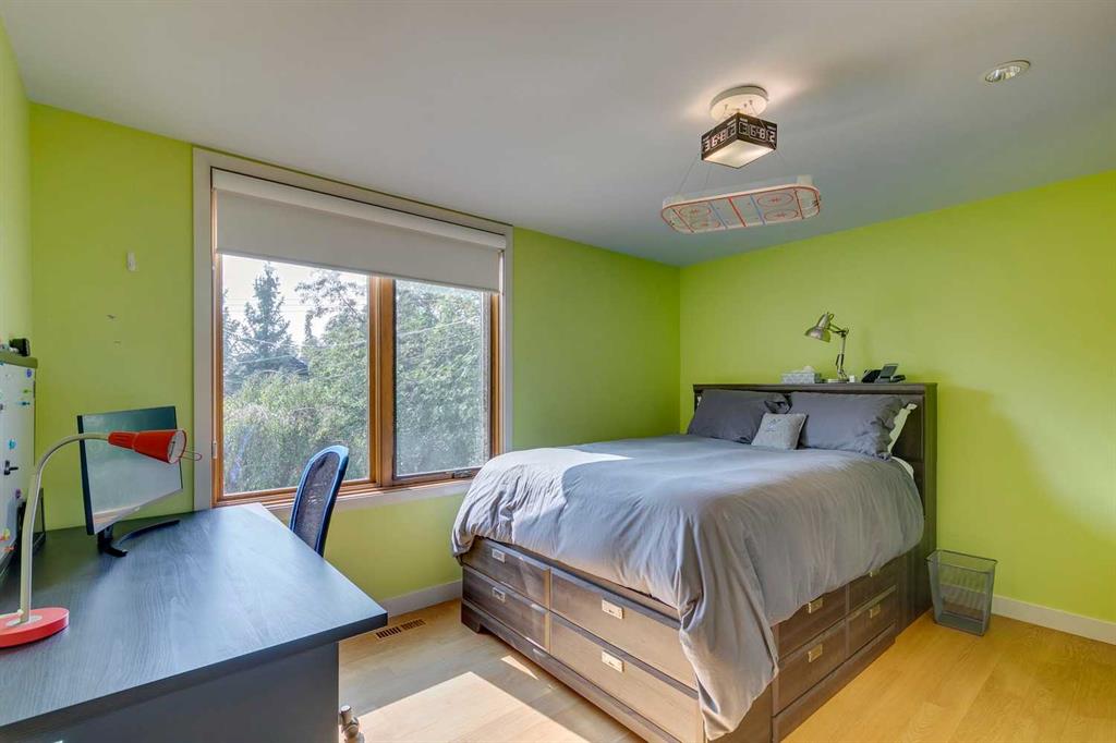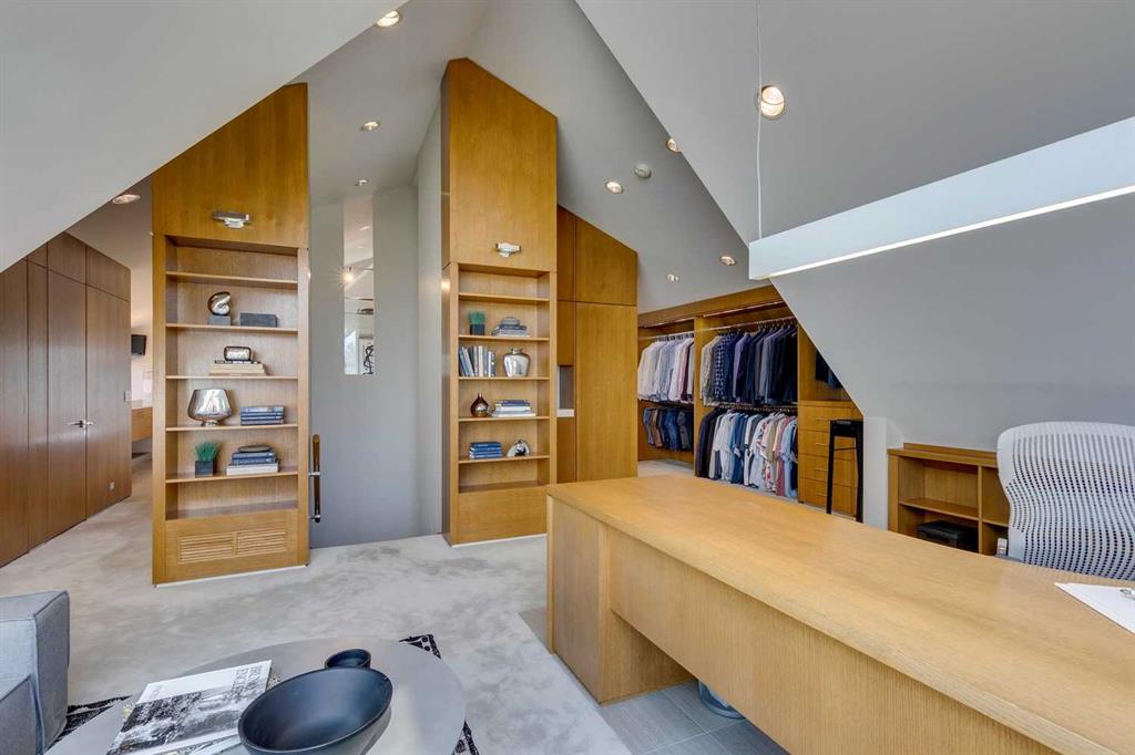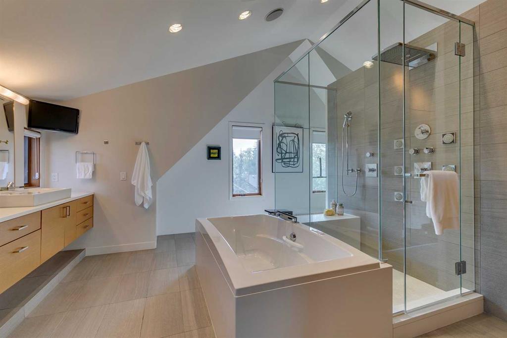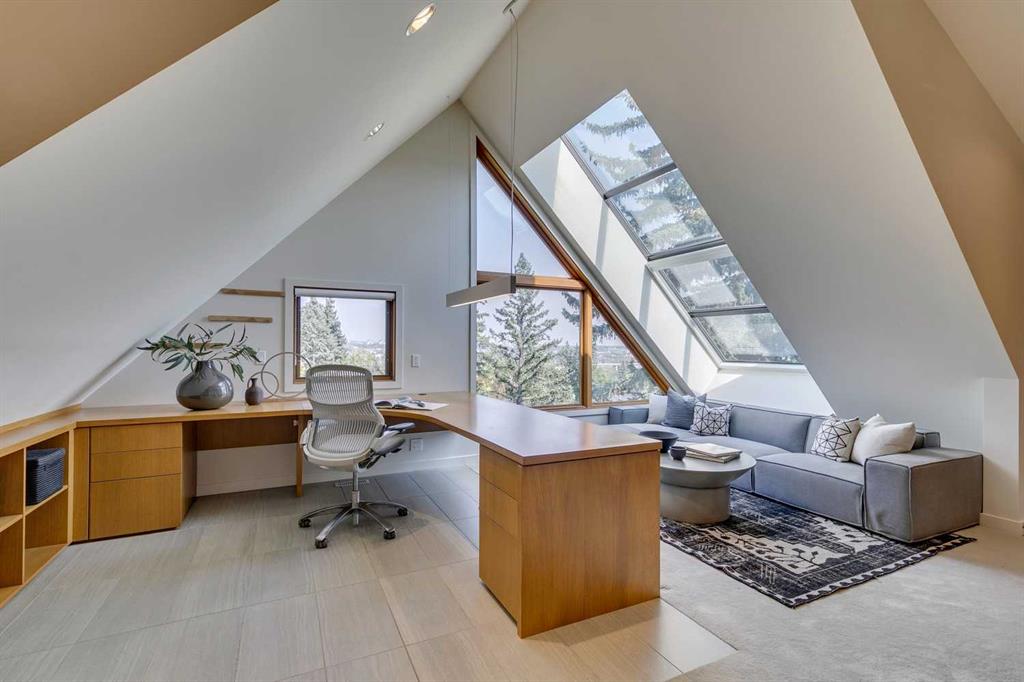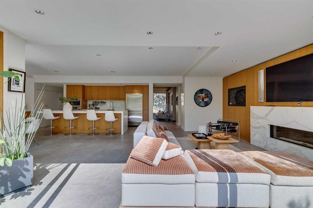 Stunning one of a kind contemporary family home in the heart of desirable Scarboro, just around the corner from the Sunalta School. This home which was completely transformed in 2013 with modern scale + design of windows + sight lines + the creation of two gorgeous outdoor living spaces both at the front + back of the property. Impressive curb appeal is welcoming with the house set back from the street . Enter to a warm living room/dining room combination with loads of windows + stunning Cypress wood ceiling. The back of the house is set up from comfortable informal living with a huge chef’s kitchen with ample storage, professional appliances, amazing pantry, large island + informal dining. The great room is right off the kitchen with ribbon gas fireplace. The entire back of the house is stunning floor to ceiling windows over looking the south facing garden + outdoor living space. On the second level there are two comfortable bedrooms + a very generous upper lounge. Laundry is also on this level. A Primary retreat, like no other, is on the third level. This luxurious space with soaring ceilings + city views consists of a built in office, lounge, sleeping quarters + spa ensuite bath as well as an substantial sized closet system. Media room, flex room, a wine cellar, mudroom + extra storage are located in the lower level which also has access to the under drive double attached garage. Amazing outdoor spaces with fountains, fireplace, + mature landscaping offers a great space for summer entertaining + room for kids to play. The quality of this home is clear with top of the line materials, a generous amount of wood, gorgeous stone + more. A must to view!