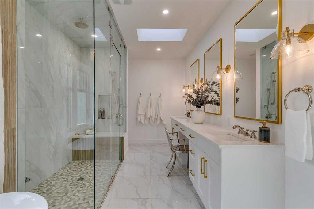 **Open house Sunday Sept 21 2:30-4 pm**. Beautiful luxury home with a total of 5671.48 square feet, situated on a private 1/3 of an acre corner prime lot in the heart of Mount Royal. Extensively renovated + elegantly appointed with a fabulous layout. The main floor offers a main floor primary suite with spacious walk in closet + spa ensuite bathroom. With 2676.54 square feet on this level, the other principal rooms are also all substantial in size. Lovely formal living room with wood burning fireplace, large dining room for intimate gatherings or family dinners. Stunning chefs kitchen with beamed ceilings, massive island, loads of cabinetry + open to comfy family room with wood burning fireplace. Laundry room + well thought out mud room complete the main level + lead to the attached triple tandem garage with high ceilings which could accommodate lifts + additional vehicles. The upper bedrooms are practical in design + share a renovated family bathroom. Easy downstairs living with a movie room with large projector screen. Bonus room to use as a wine cellar or for additional storage. Sizeable guest room + bathroom with full shower. Highly functional built out wet bar + additional living space for either your home gym or a games room for friends + family. Pie shaped lot with mature hedges creates a park feel + there is also a quiet secure backyard retreat with hot tub, pergola which is accessible through private entrance via the garage. Walk to excellent schools of all levels, parks, 17 avenue, Marda Loop shopping + more.