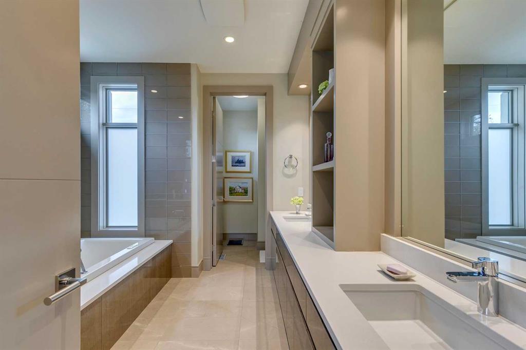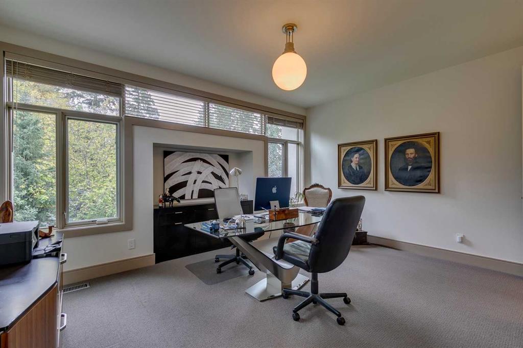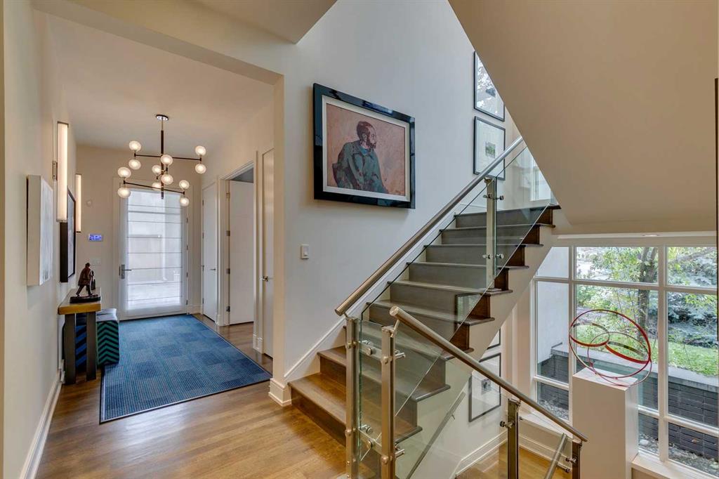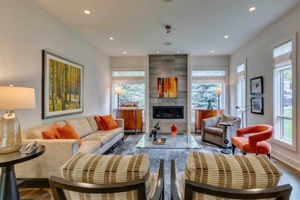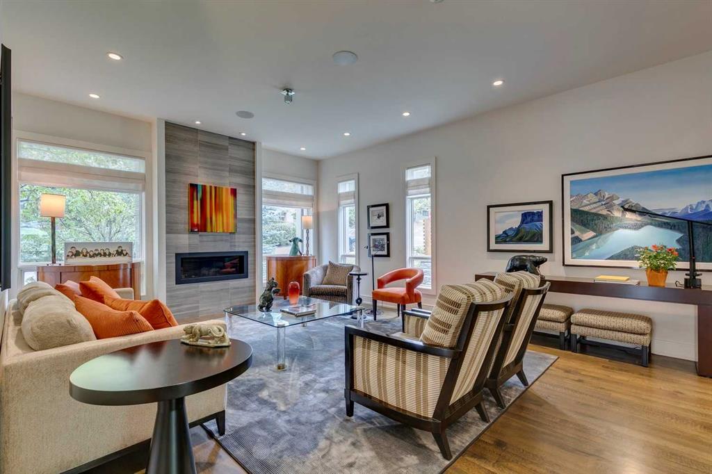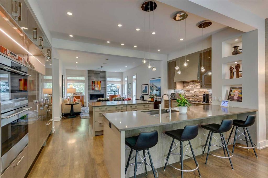 Welcome to this exquisitely crafted home, perfectly positioned on an oversized lot in the heart of Elbow Park, one of Calgary’s most established and desirable communities. Built by Empire Custom Homes, this residence offers over 3454.81 square feet of timeless design, thoughtful functionality + understated elegance. From the moment you step inside, the home reveals its careful attention to detail. A gracious front entry sets the tone, while a beautiful dining room just off to the left offers a refined space for gatherings. Beyond, the open-concept layout unfolds with a lovely formal living room anchored by a gas fireplace, creating a warm and inviting retreat for Calgary’s winters. At the heart of the home lies a chef’s kitchen designed for both beauty + performance, featuring Wolf, Sub-Zero + Asko appliances, abundant cabinetry, a generous island + a breakfast bar. This central gathering space flows effortlessly into the adjoining family room, ideal for relaxed evenings or casual entertaining. The tucked away wine-bar + a well-planned mudroom with access to the private yard and oversized double garage complete the main floor, blending everyday convenience with elegant design. A striking open staircase invites you upstairs, with the large floor-to-ceiling windows flooding the home with natural light. The upper level boasts a tranquil primary suite with an expansive walk-in closet + spa-inspired ensuite. Three additional bedrooms, each with their own ensuite, provide rare comfort + privacy for family or guests. A wide central hall enhances the sense of openness + leads to a private balcony to complete the upper level. The theme of refined living is continued on the lower level with a a spacious media room + highly functional wet bar, flexible space for a gym or playroom, a fifth bedroom + a full bathroom. Outdoors, mature landscaping frames a private patio complete with a fireplace, a perfectly designed space for year-round entertaining + quiet evenings alike. The additional green space offers room for family gatherings, children at play + moments of serenity. The combination of scale, craftsmanship + location make this Elbow Park residence a truly rare opportunity. From its proximity to top-rated schools, community parks + the Glencoe Club, to nearby river pathways, vibrant shopping + dining districts, this is a home that captures the very best of inner-city living.