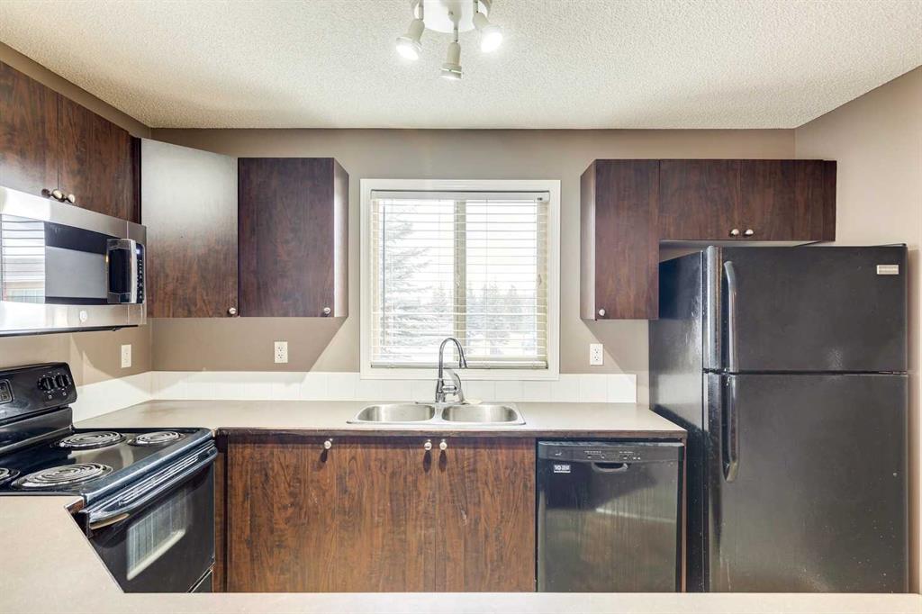 Welcome to Bridlecrest Pointe, a well-managed complex in the heart of Bridlewood. This bright second-floor corner unit offers a spacious open layout with a functional kitchen featuring ample cabinetry + sleek black appliances. The dining area flows into a large living room with access to a covered balcony. The primary bedroom easily fits a king bed + includes a walk-through closet to a 4-piece ensuite. A second bedroom, full bath + in-suite laundry with storage complete the space. Includes underground parking. Close to shopping, schools + quick access to Stoney Trail, this property is perfect for first-time buyers or investors.