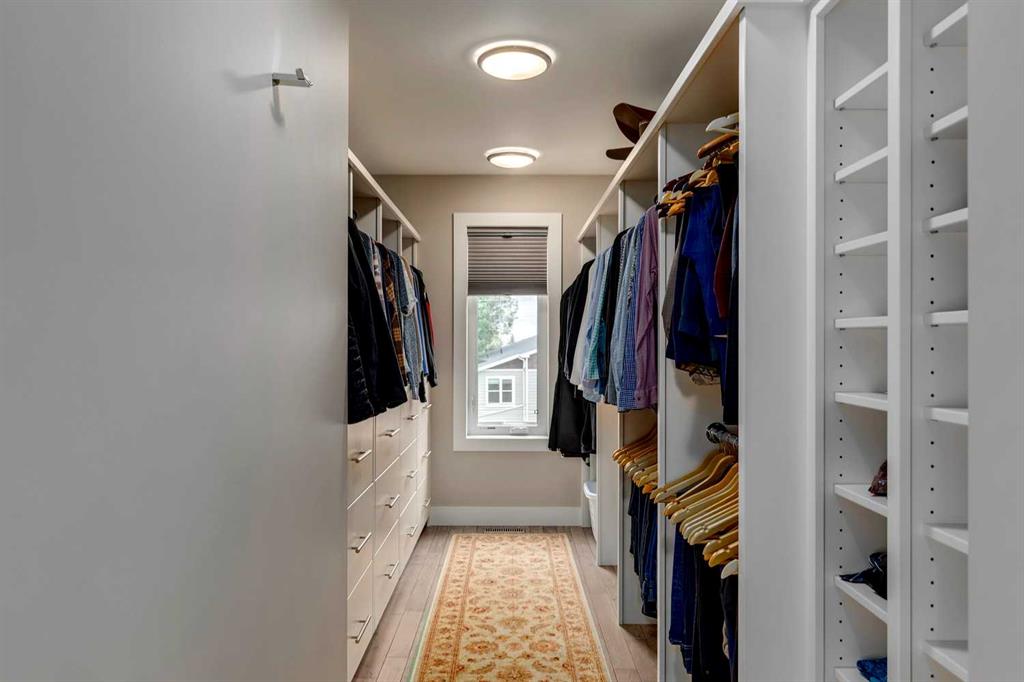 This stunning three-story detached home offers nearly 3,500 sq ft of beautifully finished living space in the heart of Richmond. Every detail reflects thoughtful design, quality craftsmanship + numerous luxury upgrades throughout. Soaring 9-foot ceilings on all levels + large windows fill the home with natural light + hardwood floors throughout. The main floor is ideal for both entertaining + everyday life. The spacious dining room is at the front of the house with lovely street views; Chefs kitchen is efficiently designed, galley style with huge island, upgraded KitchenAid appliances, Caesarstone + quartz counters, walnut cabinetry, under-cabinet lighting, floating shelves, a built-in wine wall + a movable custom island table. Comfy family room with ribbon gas fireplace overlooks backyard. Patio doors lead into the sunny, south-facing backyard—fully finished in maintenance-free concrete with gas hookups for a BBQ + fire table, outdoor speakers + a double detached garage complete with slat wall + ceiling storage. A floating oak staircase leads to the second level, which includes two generous bedrooms, a mezzanine office, a five-piece bathroom with heated floors + a full laundry room. The top-floor primary, is a private retreat, offering a massive walk-in closet with custom shoe racks + storage, a spa-inspired five-piece ensuite with a standalone tub, floor-to-ceiling tiled shower with LED lighting + heated floors. From here, access your large private rooftop patio. The fully finished basement offers a cozy living area with wet bar, an additional bedroom, three-piece bathroom, second laundry set + storage. Additional features include: Smart home system with built-in speakers + full sound/security wiring, four wine coolers, two furnaces, each with humidifiers, dual A/C units for climate control, oversized 80-gallon hot water tank, mudroom with heated floors + custom built-ins, Gemstone exterior lighting + low-maintenance turf front yard. Located on a quiet street just a short walk to Marda Loop, 17th Avenue, Richmond School (K–6) + nearby shops + restaurants.
